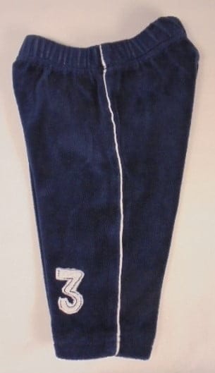 Aanvullende informatie: een donkerblauw joggingbroekje met elastisch tailleband.