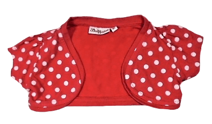 Aanvullende informatie: Bolero rood met witte stippen en korte mouwtjes