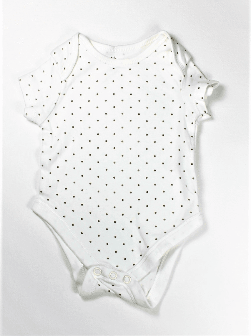 Aanvullende informatie: schattig wit met zandkleurige stipjes rompertje met korte mouwen.