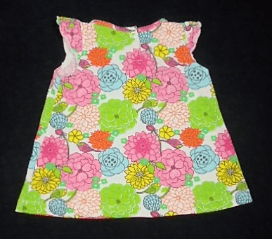 Het jurkje heeft korte mouwen en een sluiting door middel van een drukknoopje op de rugkant