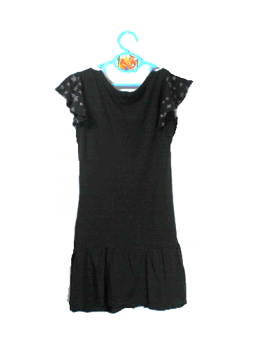 Dit jurkje heeft een ronde hals en zilverkleurige sterretjes op de mouwtjes