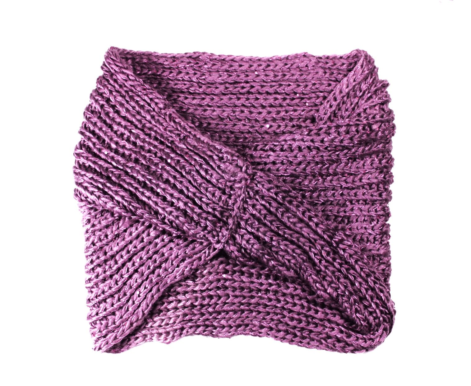 Deze gebreide colsjaal heeft glitterdraad en pailletten voor net even dat speciale effect.