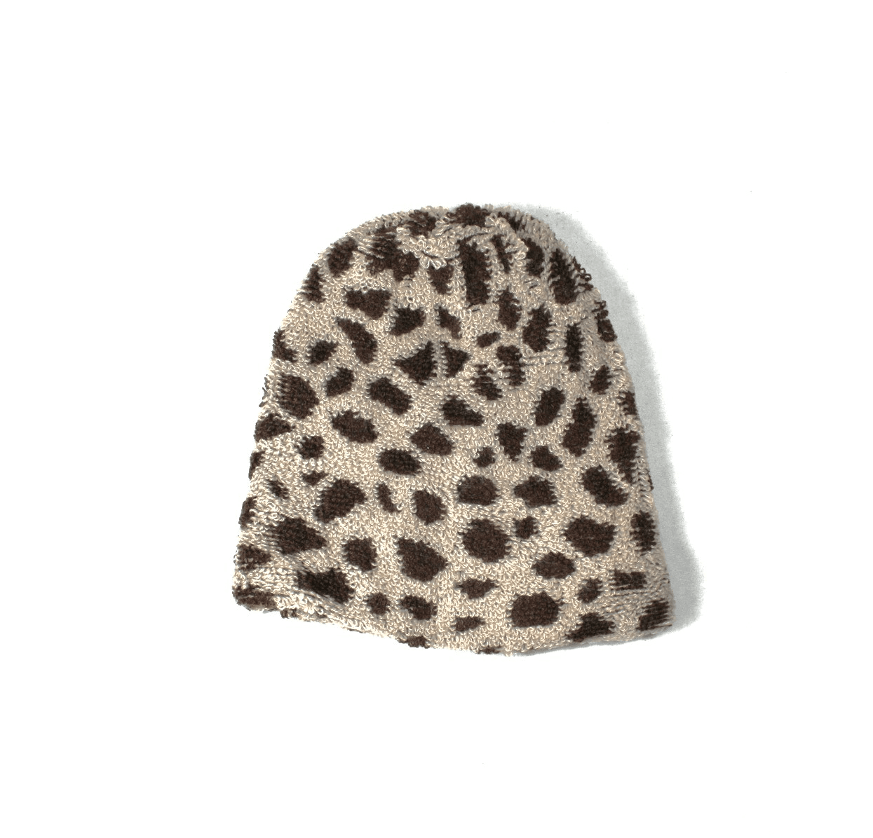 Gevoerde muts zandkleurig met bruine vlekken 44 cm omvang