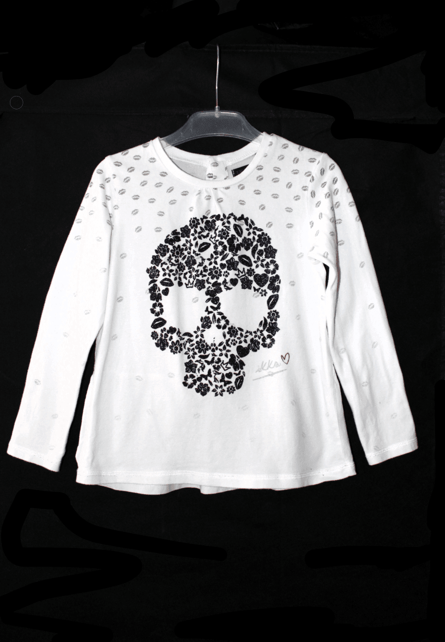 Dit shirtje heeft lange mouwen en een ronde hals.