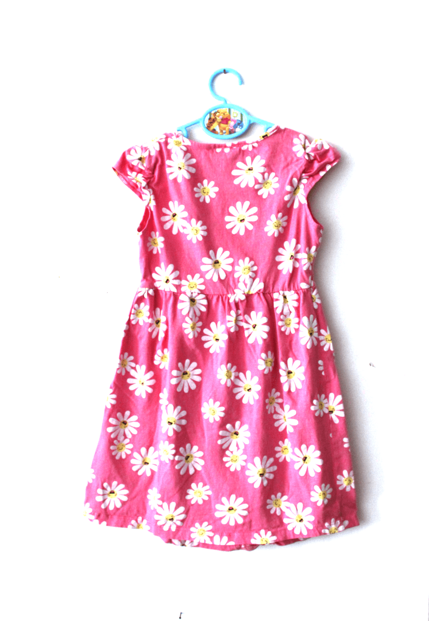 Zeg Hallo tegen dit super vrolijke roze jurkje met witte smiley bloemetjes die je gelijk HAPPY maken.