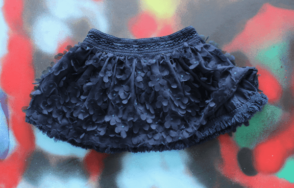 Aanvullende informatie: een super leuk rokje met een laagje tule met opgenaaide blauwe bloemen.