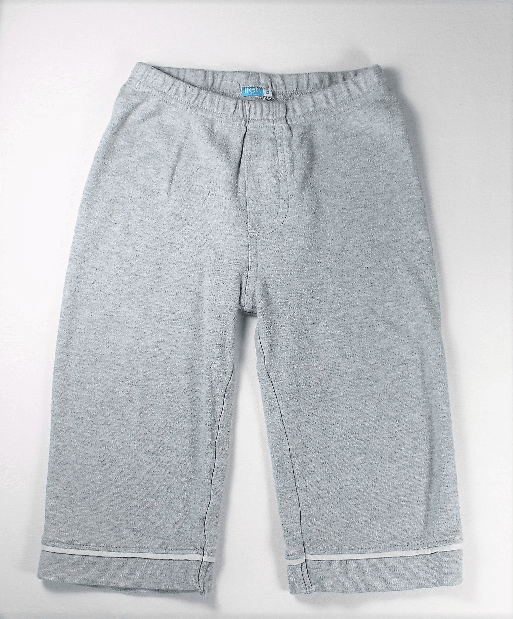 Broekje: Elastiek tailleband en lange rechte pijpjes met wit sierrandje.