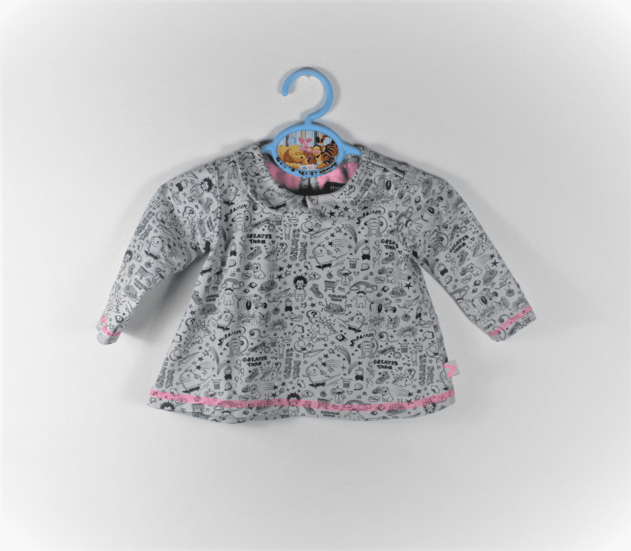 Moodstreet baby jurkje grijs met zwarte figuurtjes maatje 56