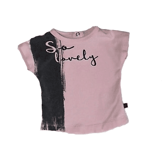 De kleur van het shirt is roze met een zwarte streep rechterkant.