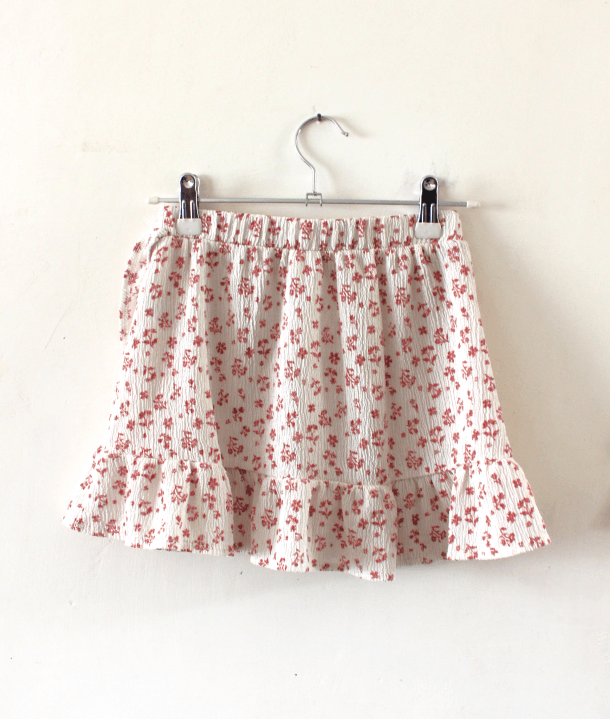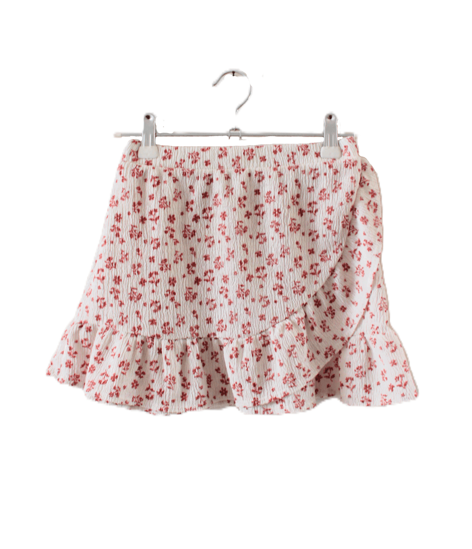 Rokje gebroken wit met beige bloemetjes en vast omslag van Hema maat 122/128