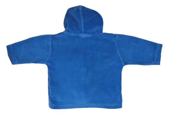 Een blauw vestje met geborduurde Winnie the Pooh.