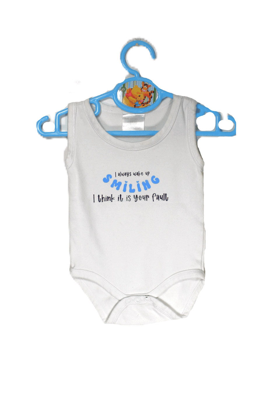 Dit rompertje was eerst saai wit maar we hebben er een schattige tekst op gedrukt.