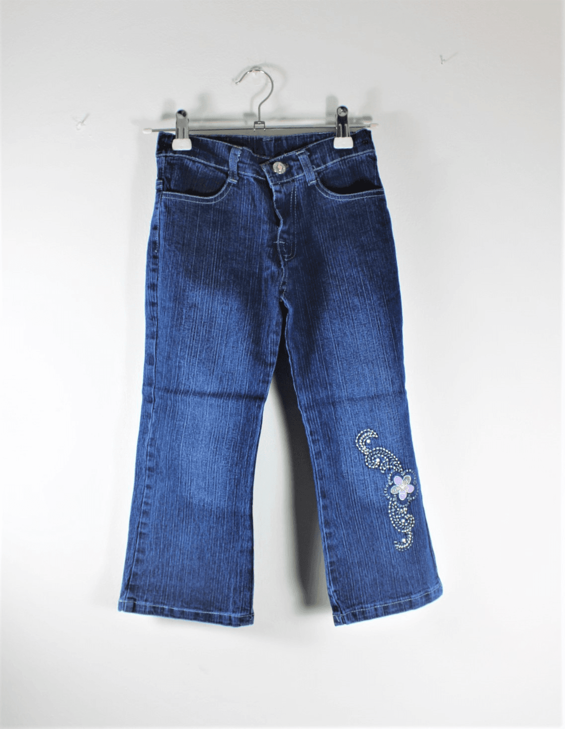 Zomer spijkerbroek blauw met sierstiksel bloem maat 128